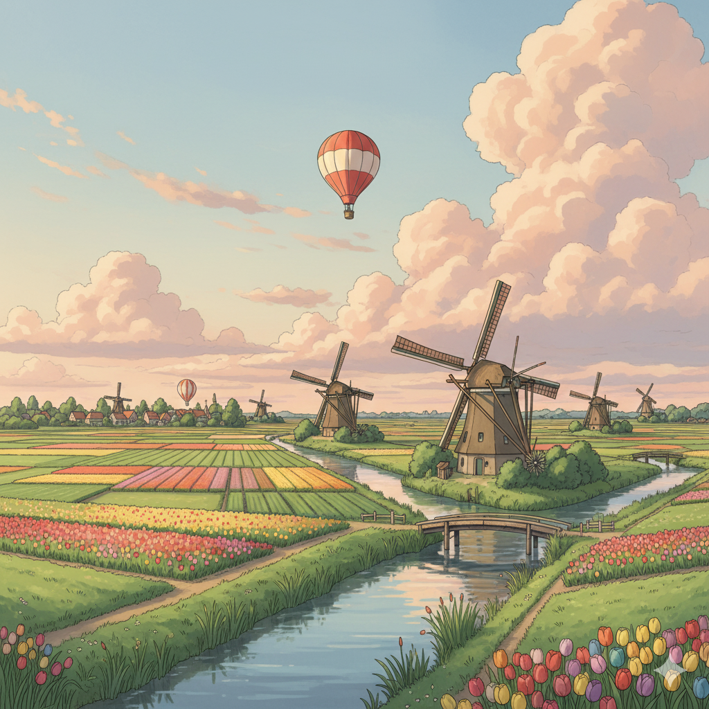 تصميم جميل بالذكاء الصناعي للطواحين في هولندا